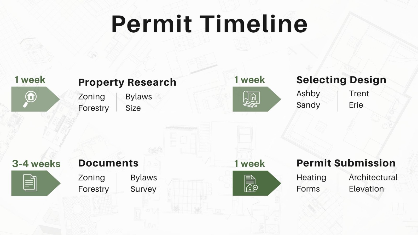 Comprehending our clients’ requirements and harmonizing them with our capabilities and zoning regulations marks the initial phase. Subsequently, permits are secured for the pre-approved structure and garden suite specifications, initiating the preparatory stages for construction by our dedicated team.